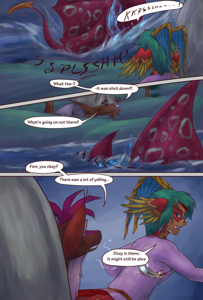Welp, it’s not a surprise that all that noise woke Secrasi up haha. Dragon’s not a threat now at least! ___ You can now support my comic on TWC here!- topwebcomics.com/vote/22747 Patreon- www.patreon.com/feniiku Tapas mirror- https://tapas.io/series/25710 Webtoons mirror- https://www.webtoons.com/en/challenge/fallenmist-phoenix/list?title_no=346154