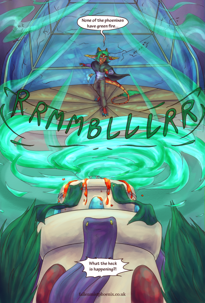 GREEN :O But what about Farinu’s pretty blue fire???? ___ You can now support my comic on TWC here!- topwebcomics.com/vote/22747 Patreon- www.patreon.com/feniiku Tapas mirror- https://tapas.io/series/25710