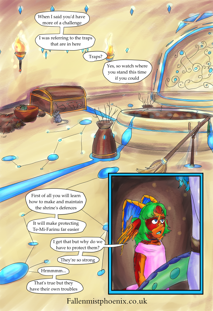 Farinu’s shrine has constellations on the floor! He’s the prince of stars, so he’s associated with the sky and flight, as well as guidance. The constellations are ones that can be seen above Arirutaria.
